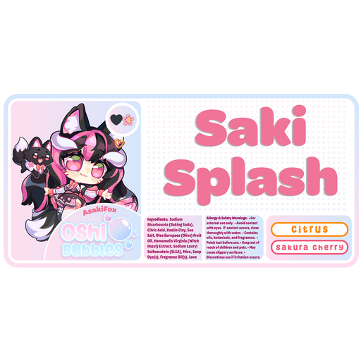 Oshi🫧BubblesSaki's Saki Splash captures her cute charm and sweet scent perfectly, wrapping you up in a warm hug of fluff to unwind the day to. Bath Bomb Ingr...