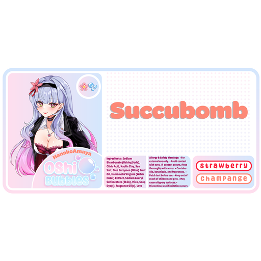Oshi🫧BubblesGet ready for an explosive aroma of patchouli and strawberry with Hanako's succubomb! Using earthy scents that'll making using this bath bomb feel ...